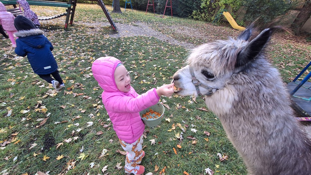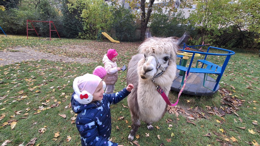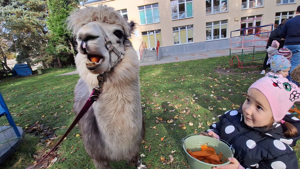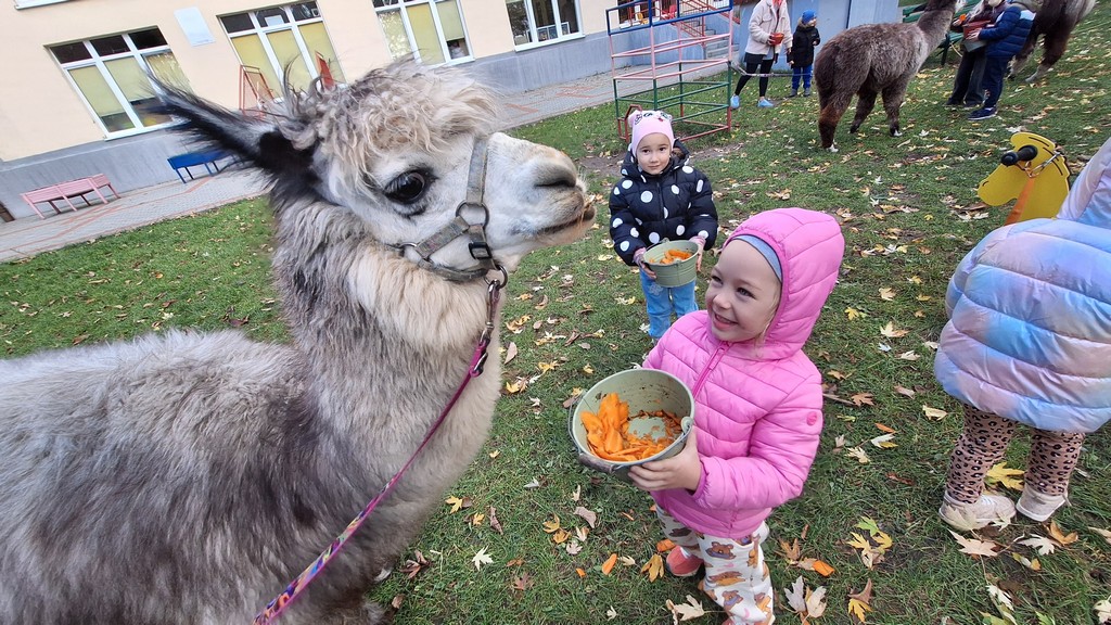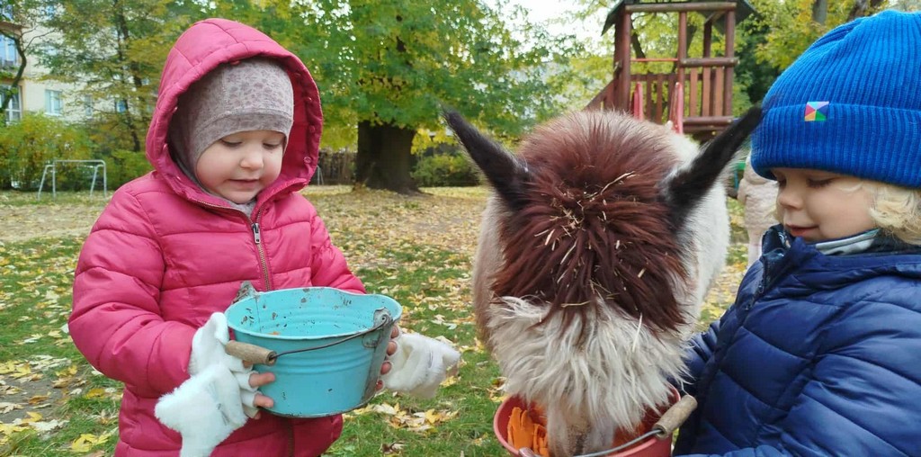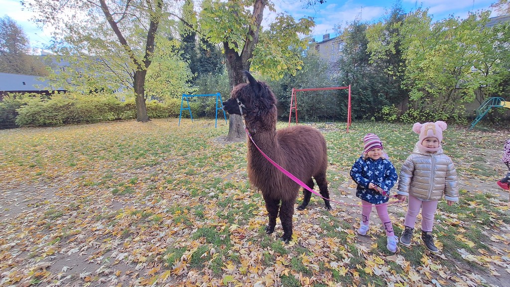 W październiku przyjechały do nas Alpaki z Orzechove AlpakoweLove. Dzieci dowiedziały się jak trzeba opiekować się alpakami i jak wygląda ich hodowla. Karmiły zwierzątka ich przysmakiem (marchewkami), spacerowały z alpakami po ogrodzie, głaskały, przytulały się do ich mięciutkiego futerka i je czesały. Opiekun tych cudnych zwierząt dzieciom starszym opowiadał o życiu alpak w ich naturalnym środowisku i odpowiadał na wszystkie pytania, by zaspokoić ciekawość dzieci.