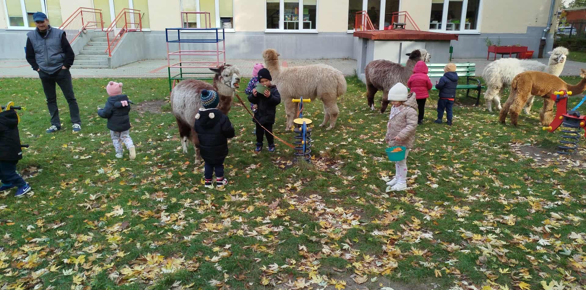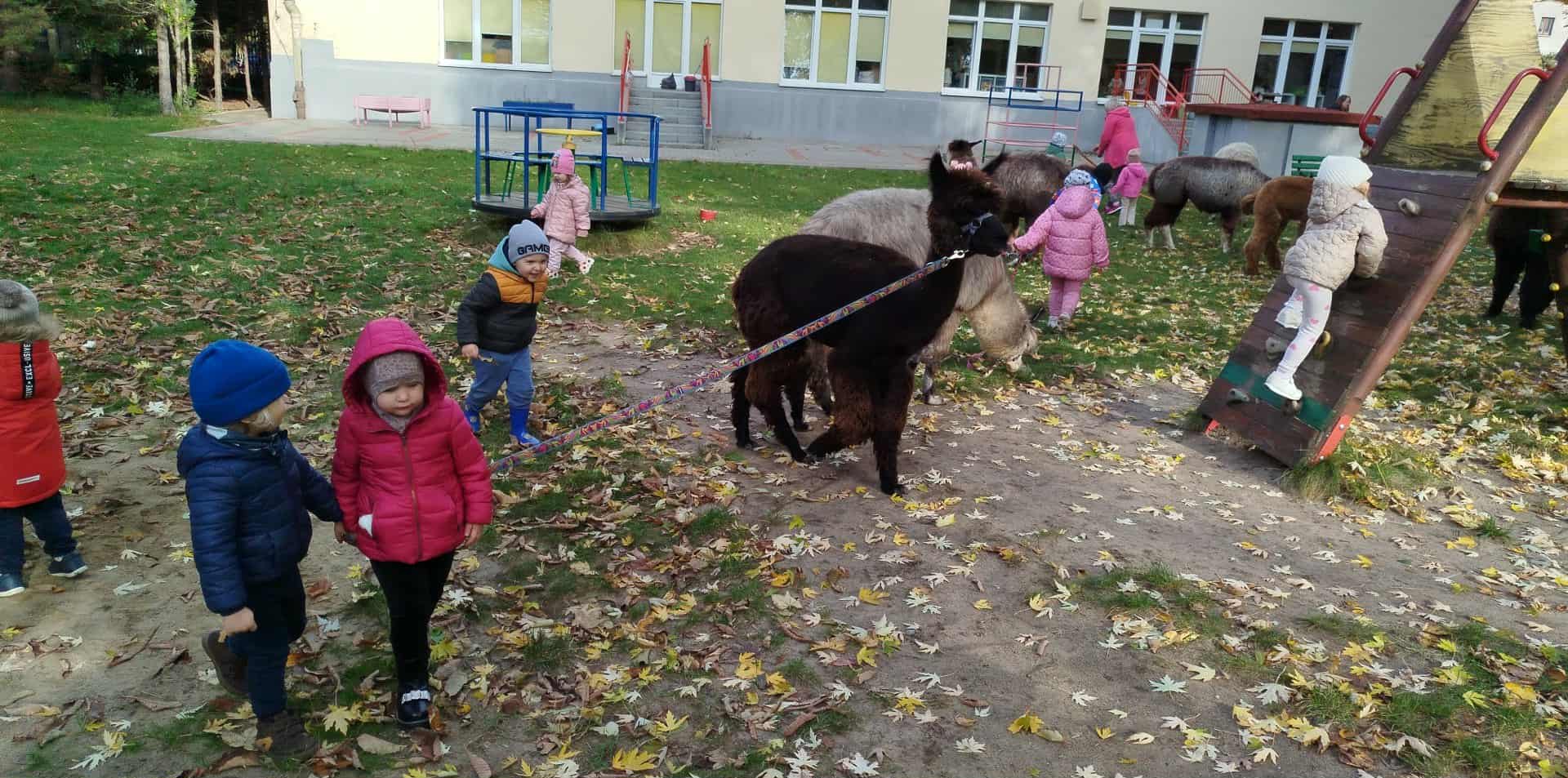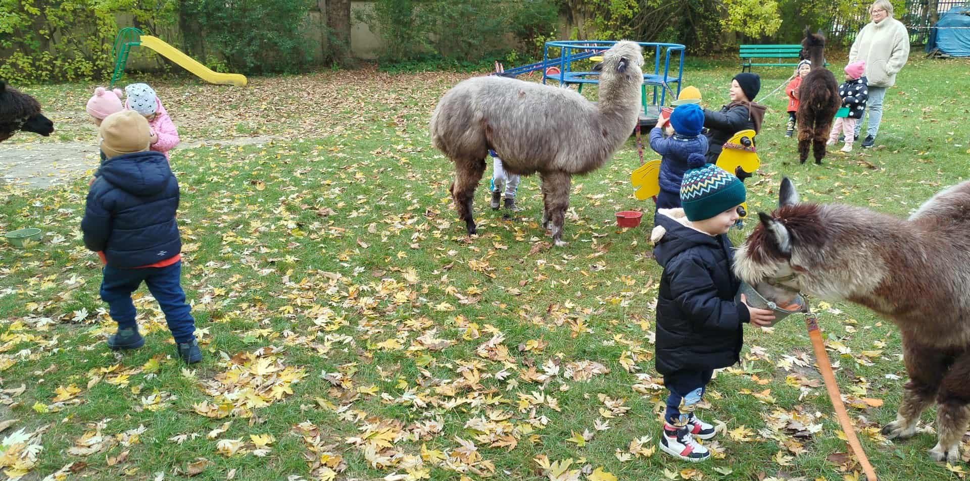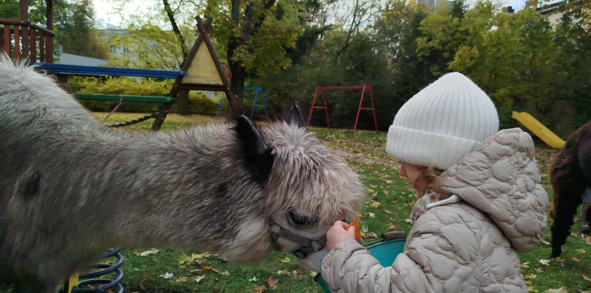Alpaki w ogrodzie przedszkolnym