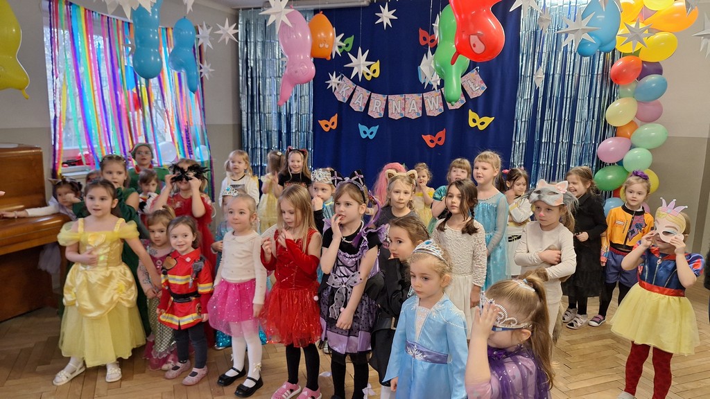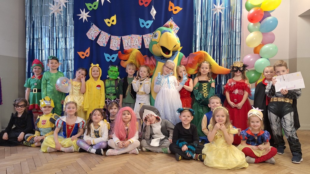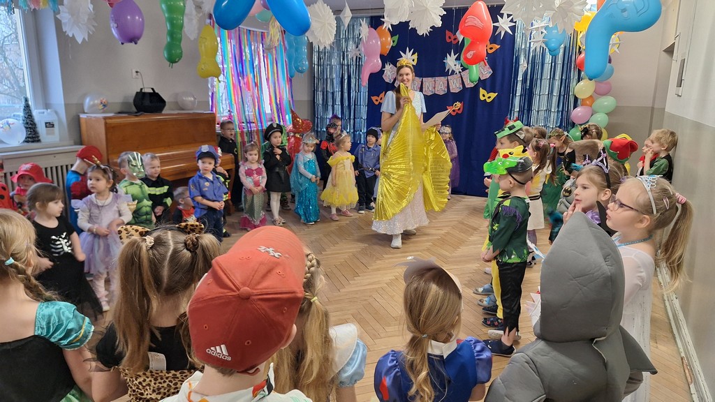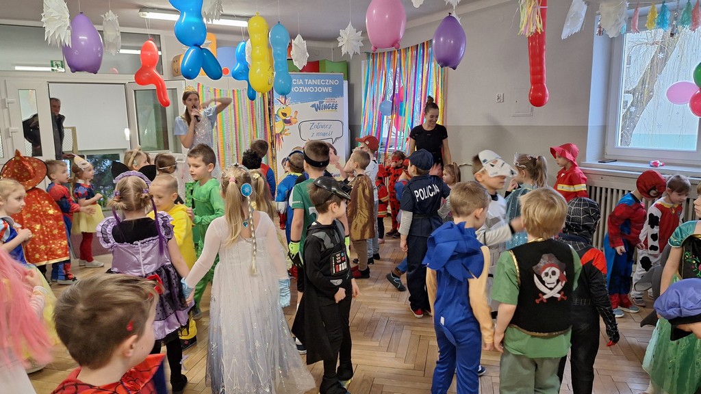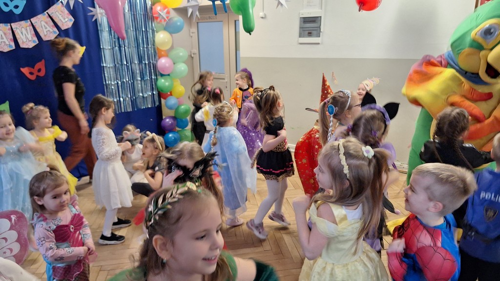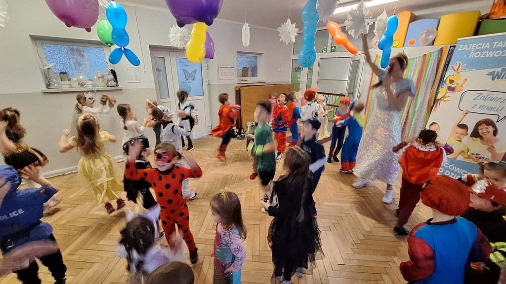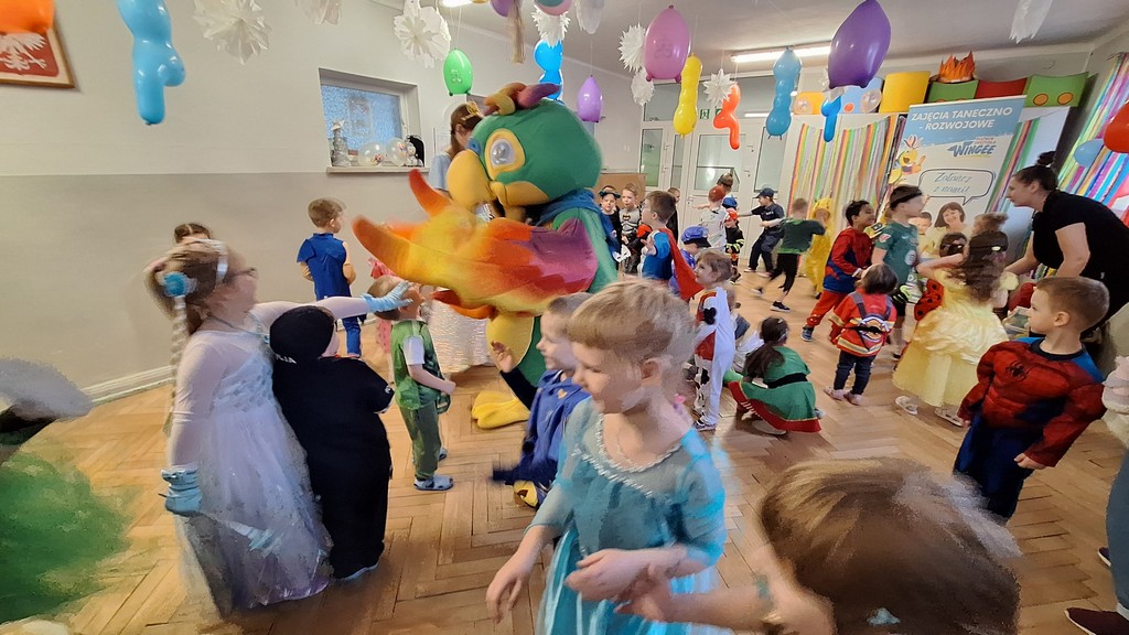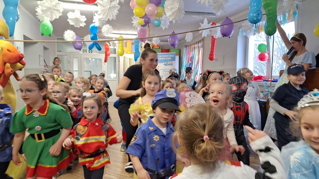 W tym roku w naszym przedszkolu 29 stycznia odbył się Bal Karnawałowy. Cała uroczystość poprowadzona była przez animatorów "Wingee" w formie zadań do wykonania. Były zadania taneczne w formie bitwy w której udział brały dwie drużyny - drużyna wszystkich chłopców i drużyna wszystkich dziewczynek. Były taneczne zwierzątka, opowieści taneczne i wiele wiele innych. Wszystkie przedszkolaki były ślicznie przebrane i fantastycznie się bawiły.