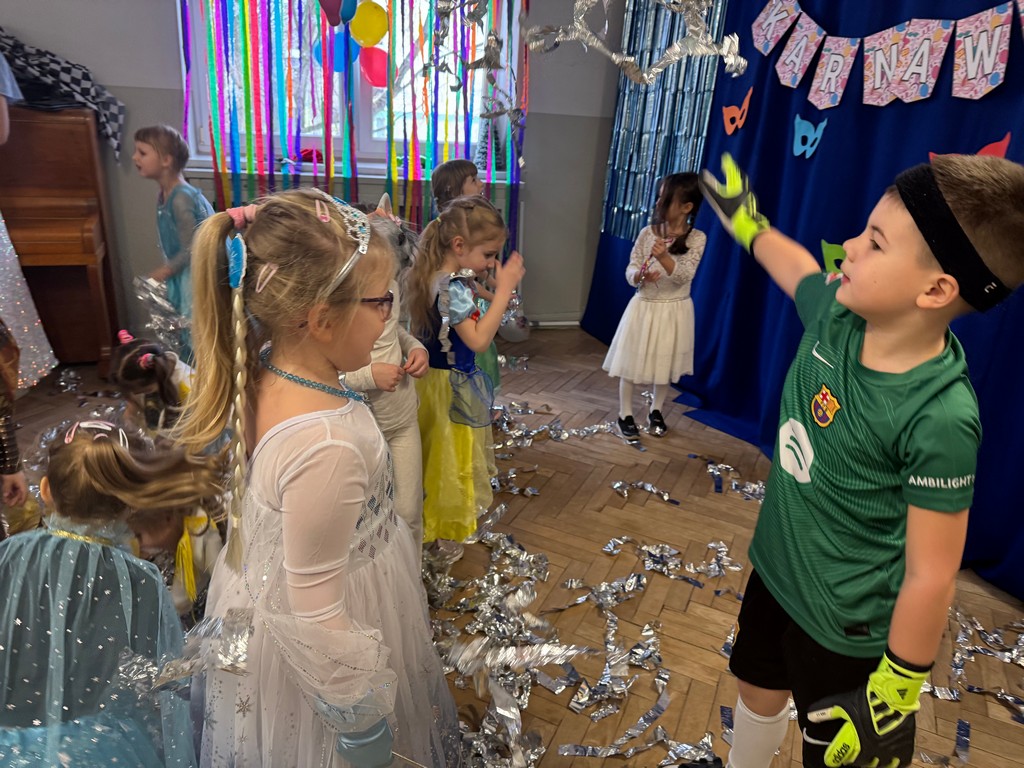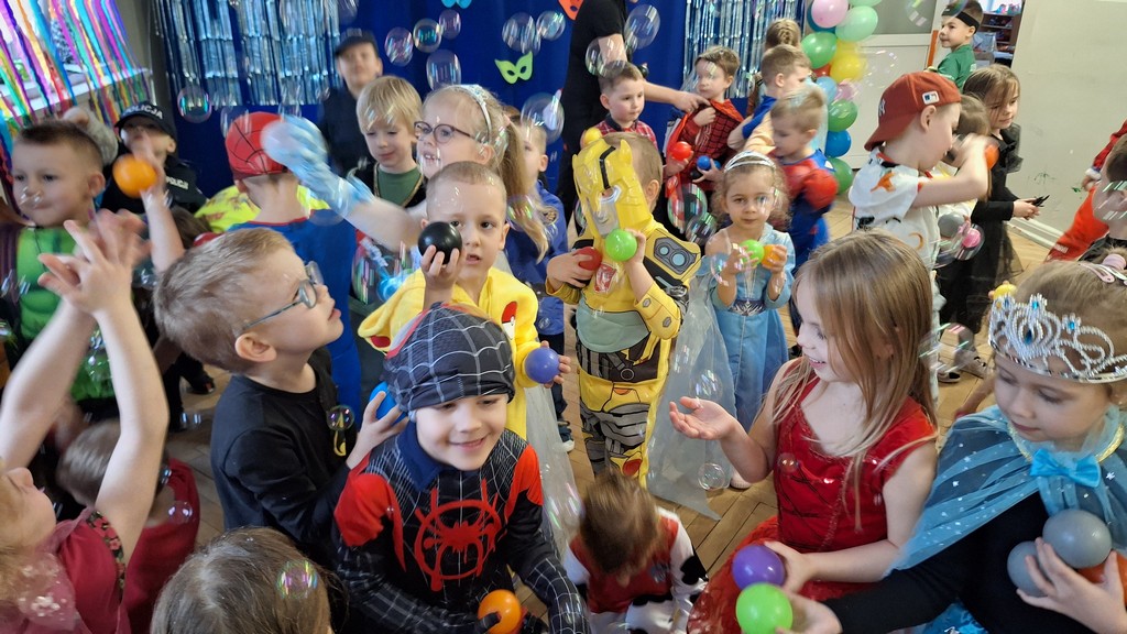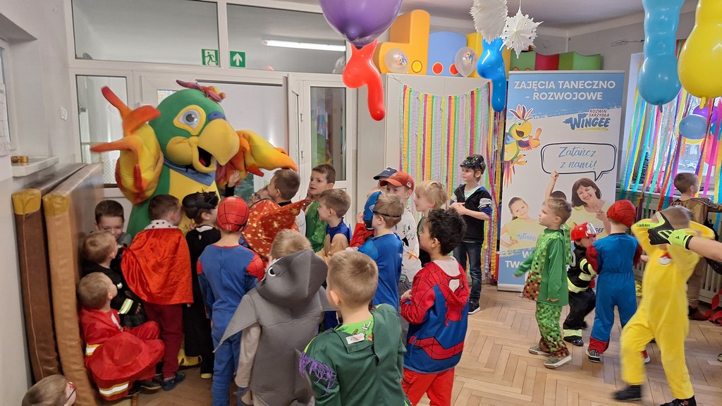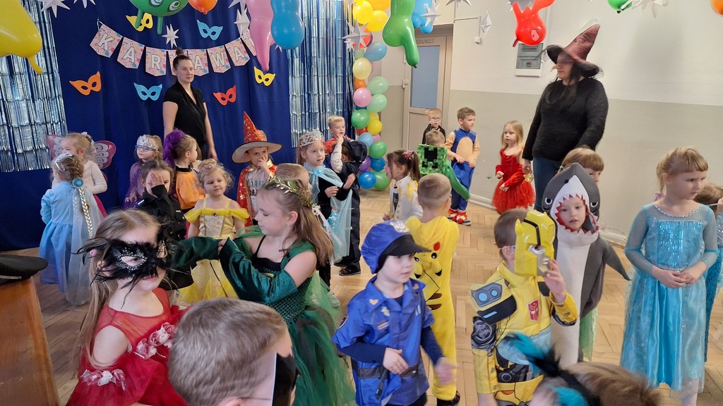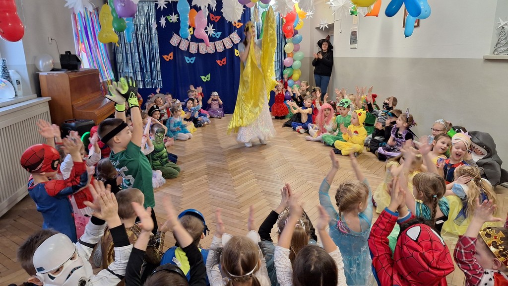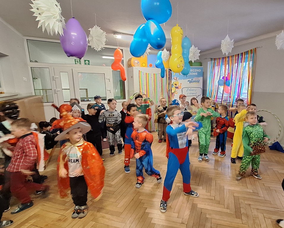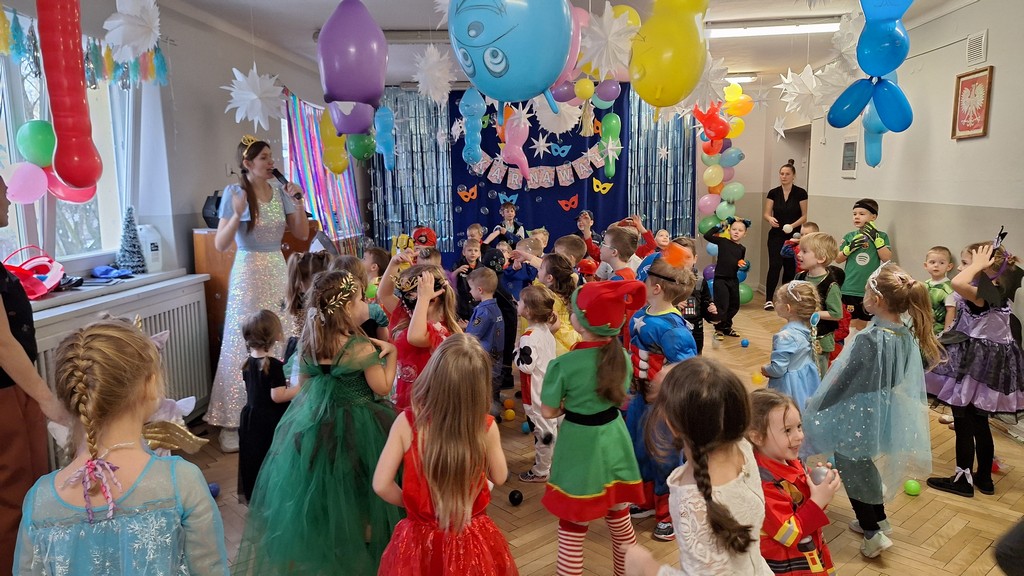 W tym roku w naszym przedszkolu 29 stycznia odbył się Bal Karnawałowy. Cała uroczystość poprowadzona była przez animatorów "Wingee" w formie zadań do wykonania. Były zadania taneczne w formie bitwy w której udział brały dwie drużyny - drużyna wszystkich chłopców i drużyna wszystkich dziewczynek. Były taneczne zwierzątka, opowieści taneczne i wiele wiele innych. Wszystkie przedszkolaki były ślicznie przebrane i fantastycznie się bawiły.