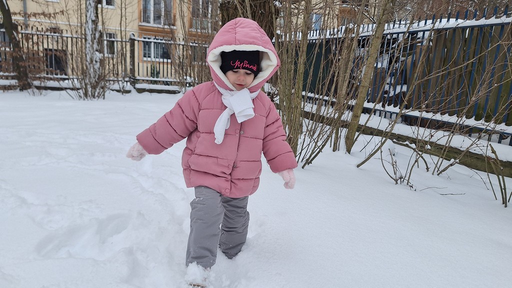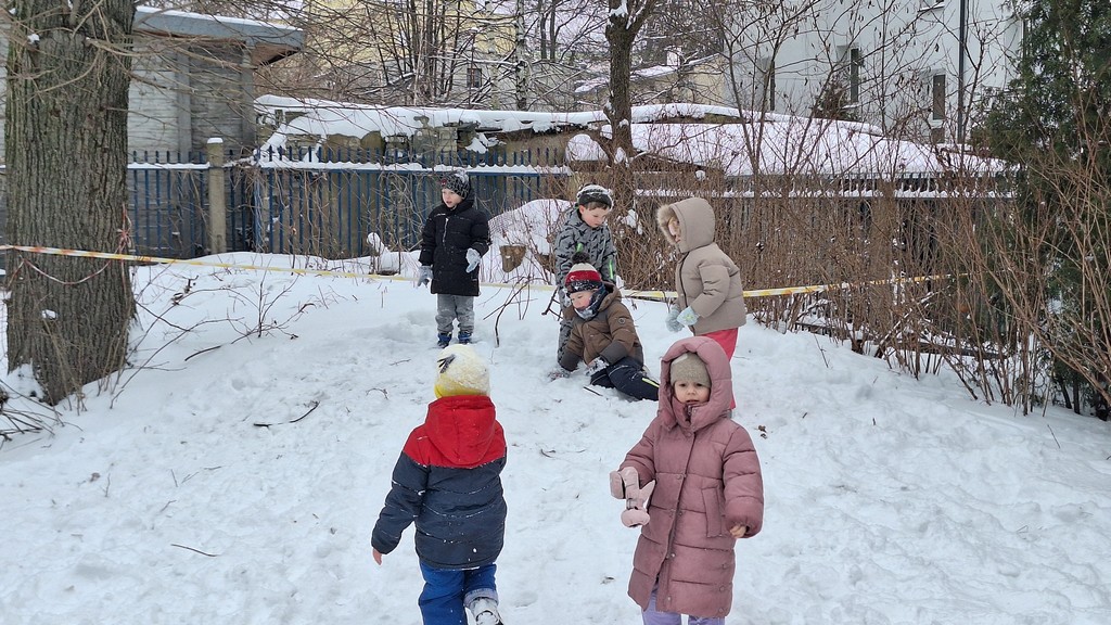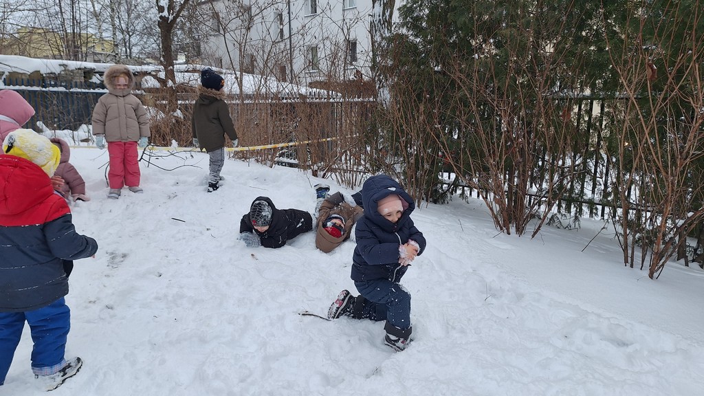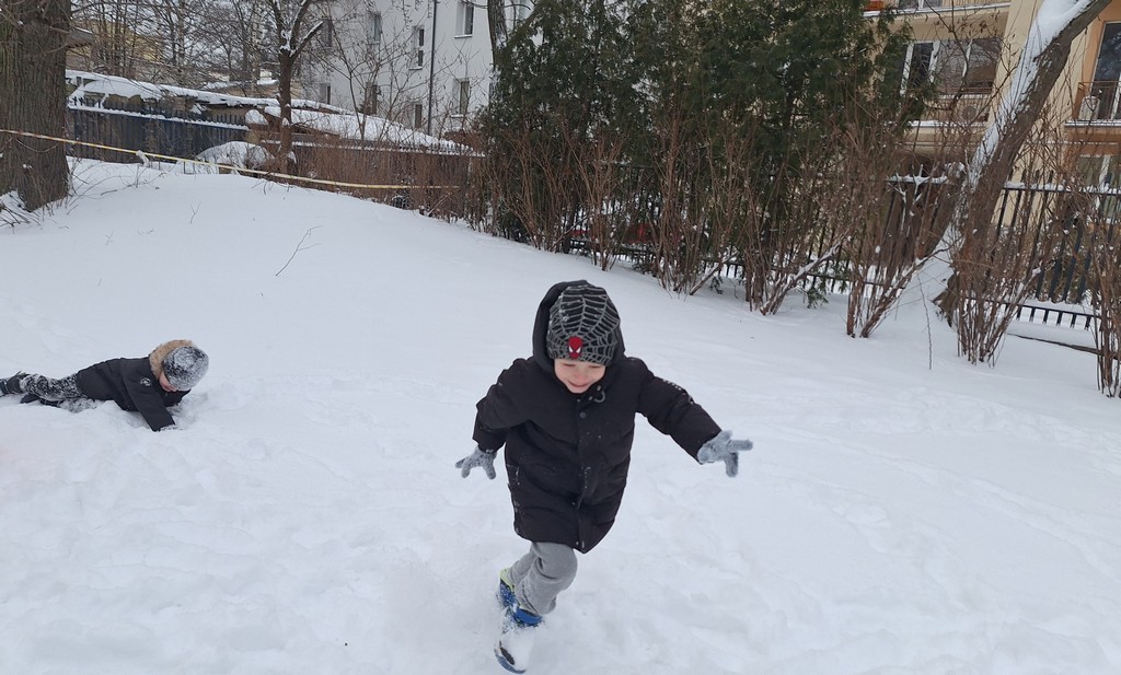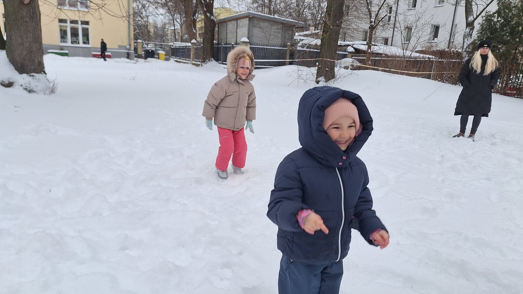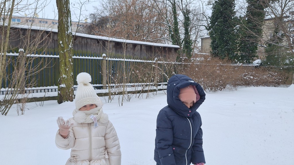 Zabawy w ogrodzie pełnym śniegu