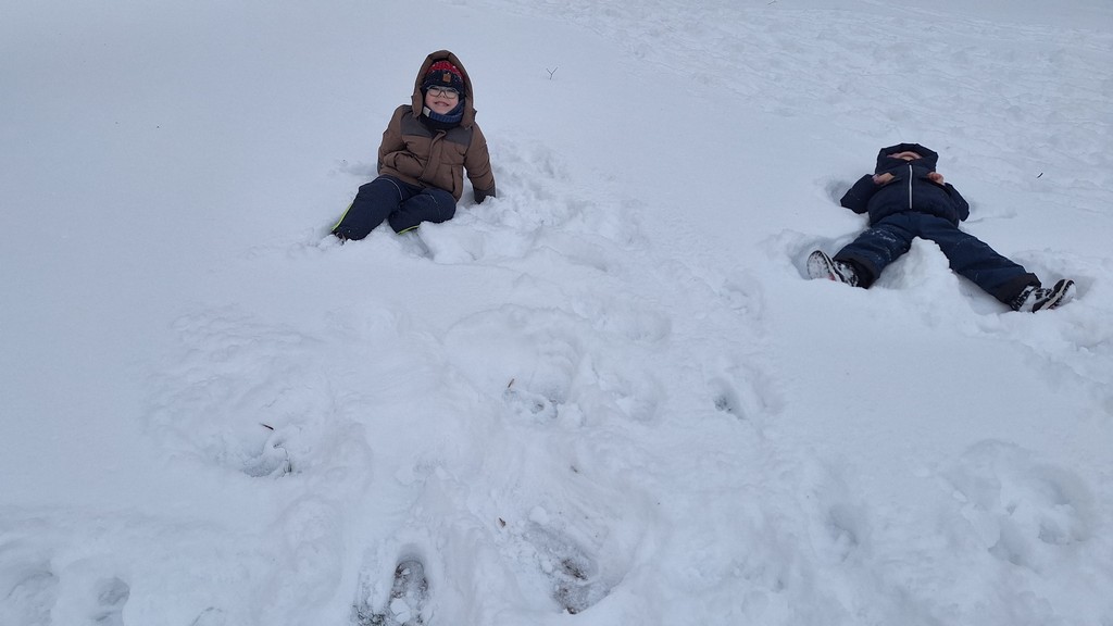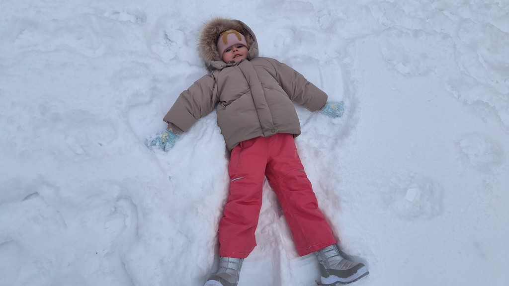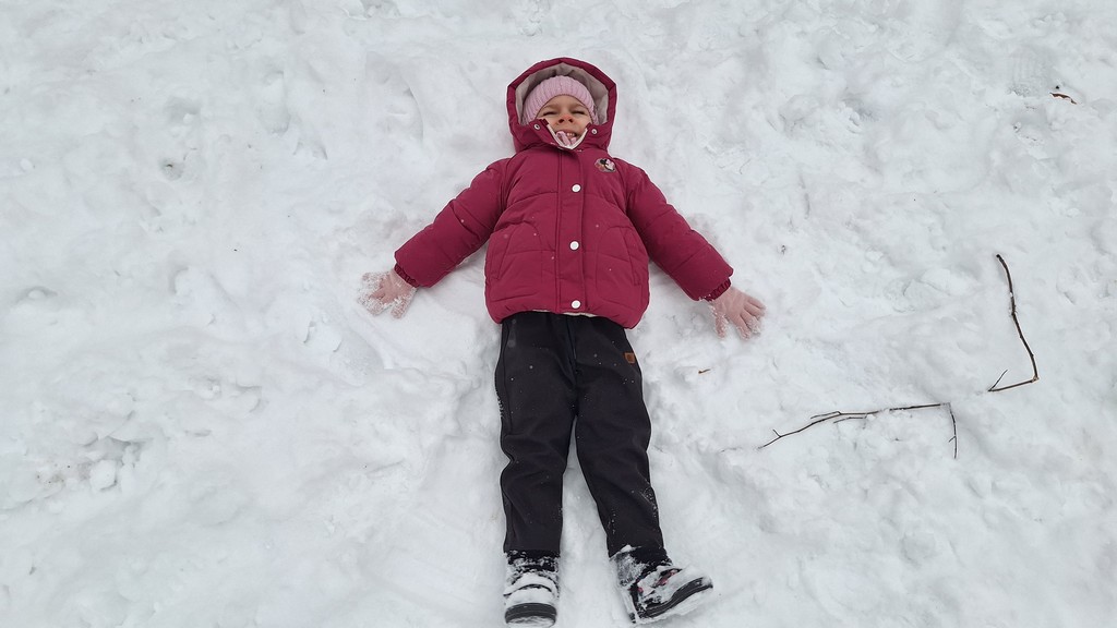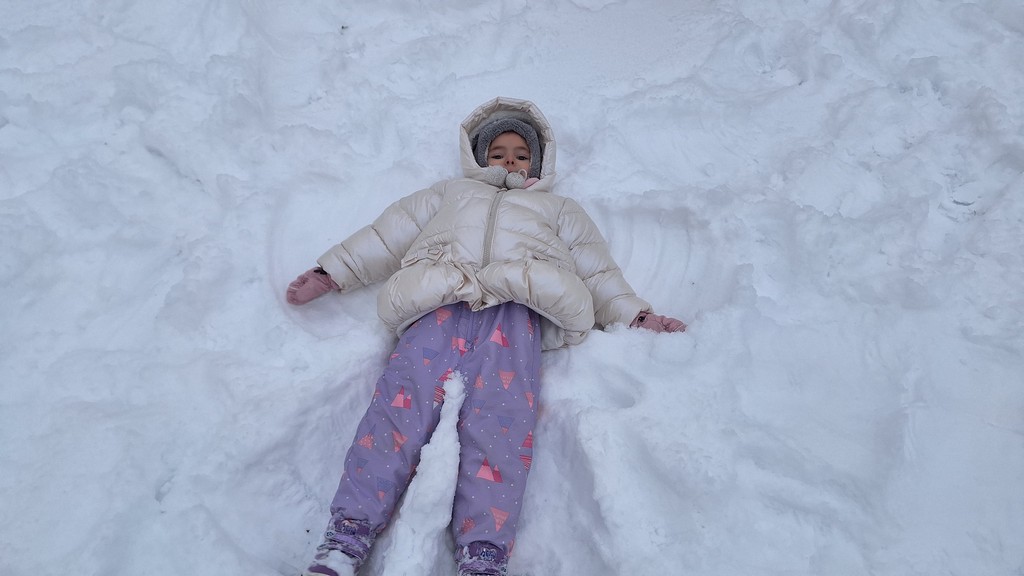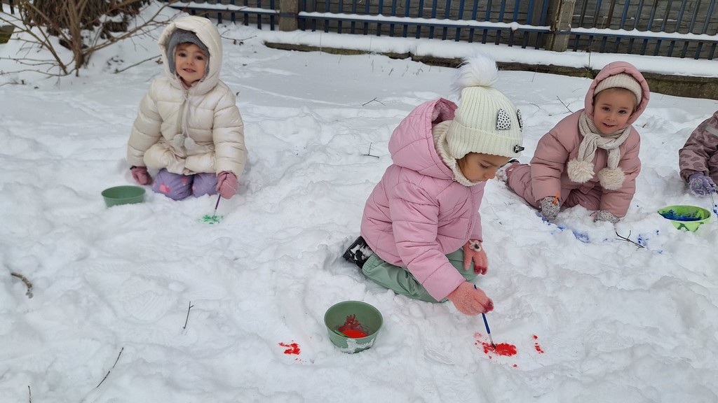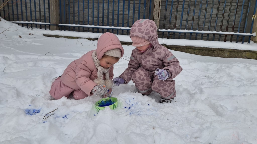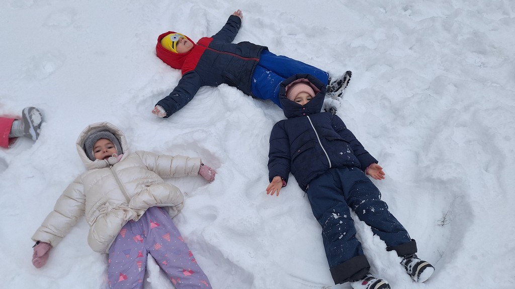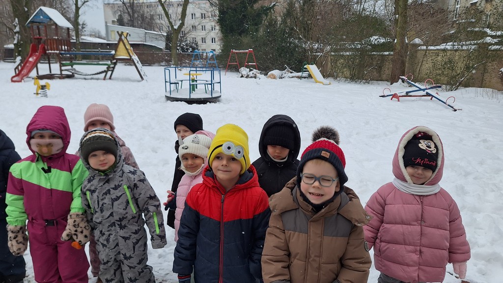 Korzystając z fantastycznej zimowej aury spędziliśmy kilka dni na fantastycznej zabawie w naszym ogrodzie. Tym razem było wyjątkowo biało i zupełnie inaczej niż zawsze. Robiliśmy na śniegu aniołki, traktorki, zajączki. Zbiegaliśmy z górki na pazurki, a nawet turlaliśmy się z górki. Rzucaliśmy się śnieżkami i podrzucaliśmy puszysty śnieg. Było dużo śmiechu i radości. Ostatniego dnia sprzyjającej pogody malowaliśmy śnieg farbami i rozwiązywaliśmy zagadkę czy śnieg jest czysty. Następnym razem zorganizujemy sobie sanki.