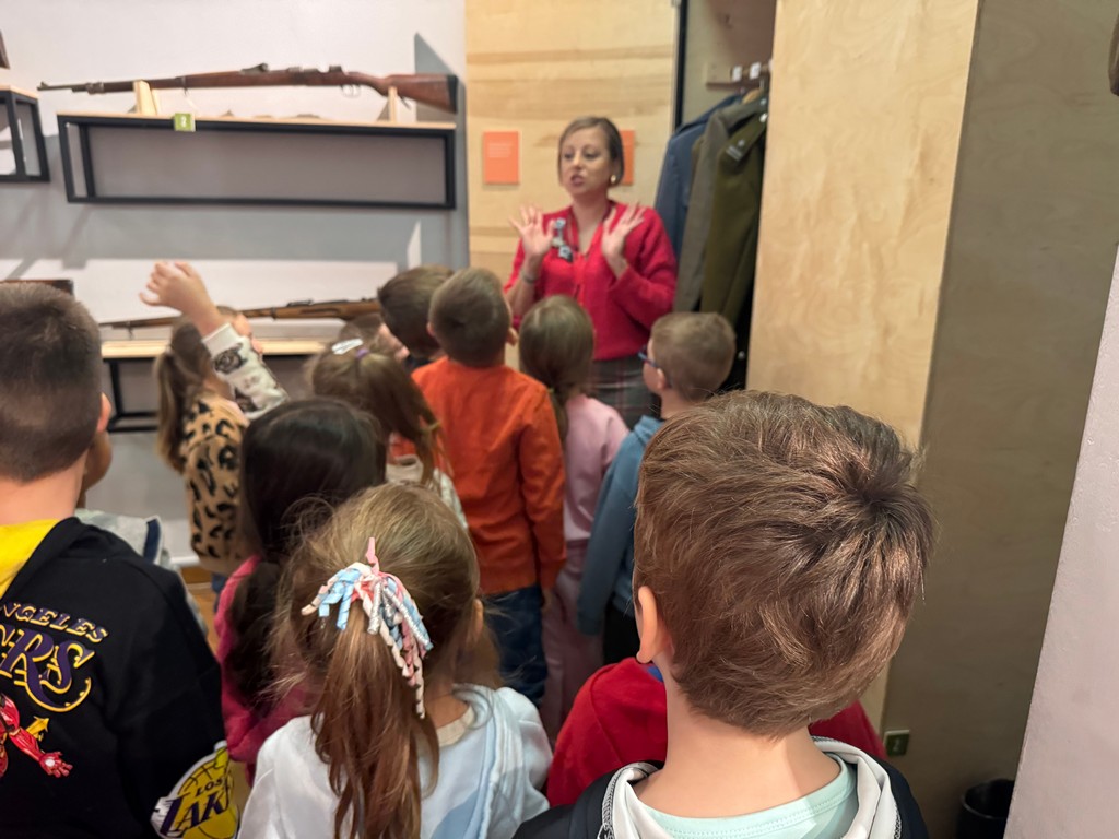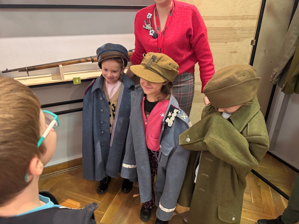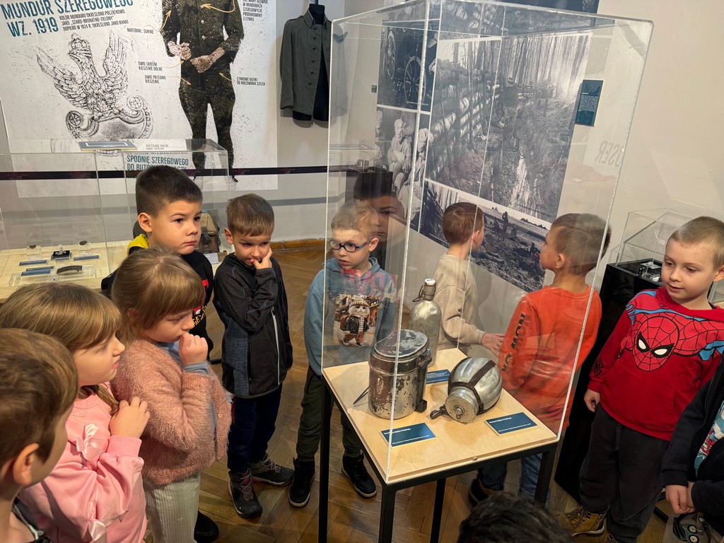 Przy okazji Święta Niepodległości odbyła się wycieczka do Muzeum na warsztaty pt. "Żołnierz, kto to taki...". Dzieci podczas zajęć dowiedziały się kogo możemy nazwać żołnierzem. Obejrzały wystawę, na której poznały wybrane mundury i elementy żołnierskiego ekwipunku. Zajęcia zakończyły się kolorowaniem tematycznych obrazków oraz nauką piosenki żołnierskiej.